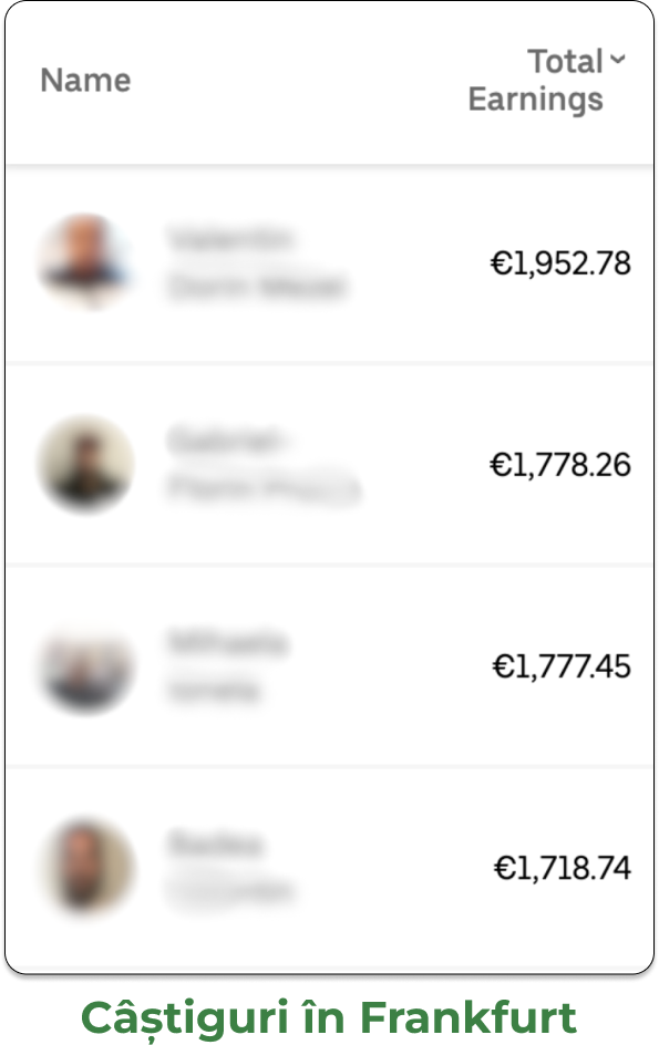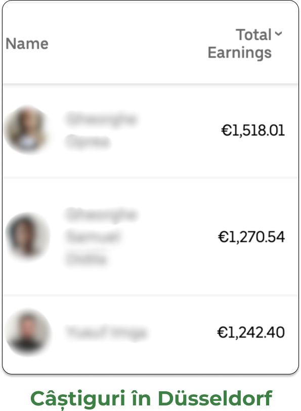 După ce aplici și trimiți documentele, parcurgem rapid onboarding‑ul și programăm primele ture. În orașele cu cerere mare, intri mai repede în activitate.